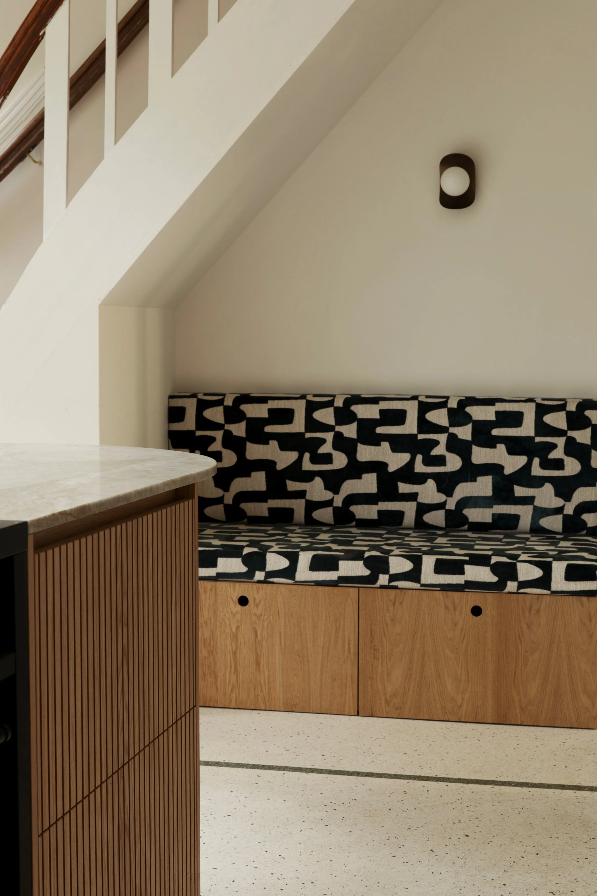 The design returned to a language true to the home’s origins, reintroducing a sense of craftsmanship and authenticity. A newly poured terrazzo floor, warm tonal layers, and carefully considered detailing bring depth and character, while contemporary refinements lend clarity and comfort.