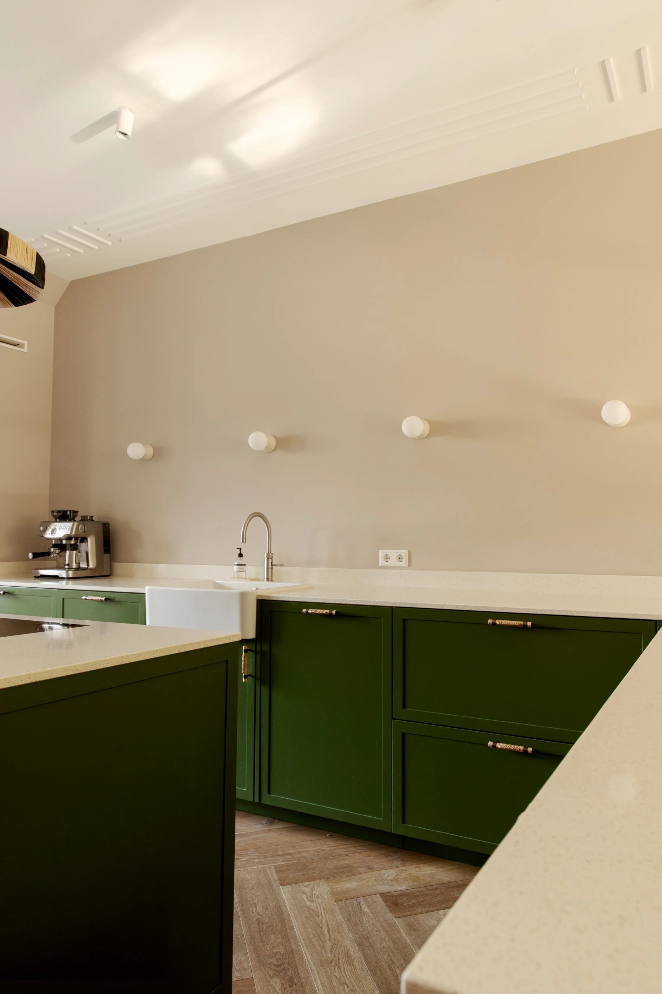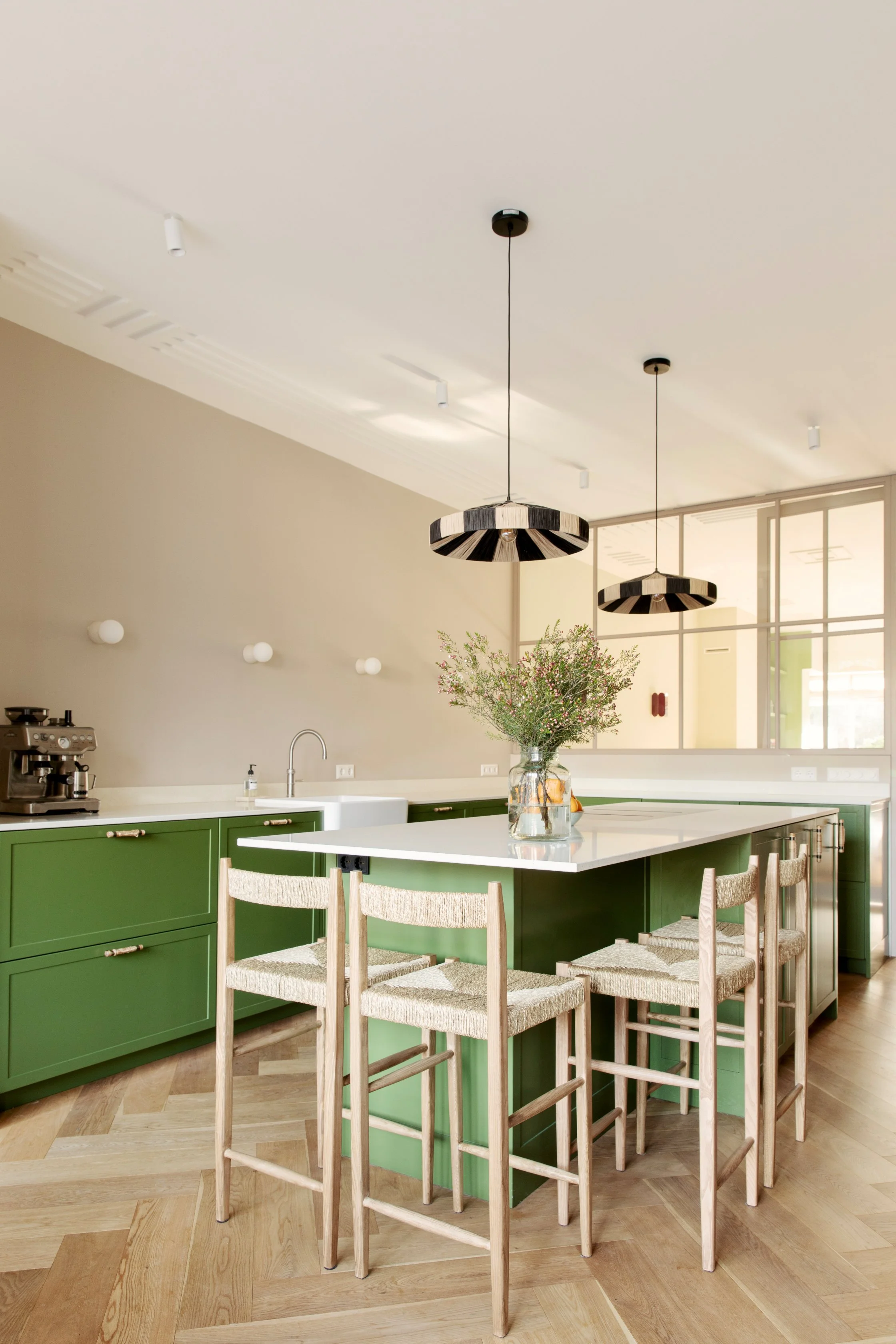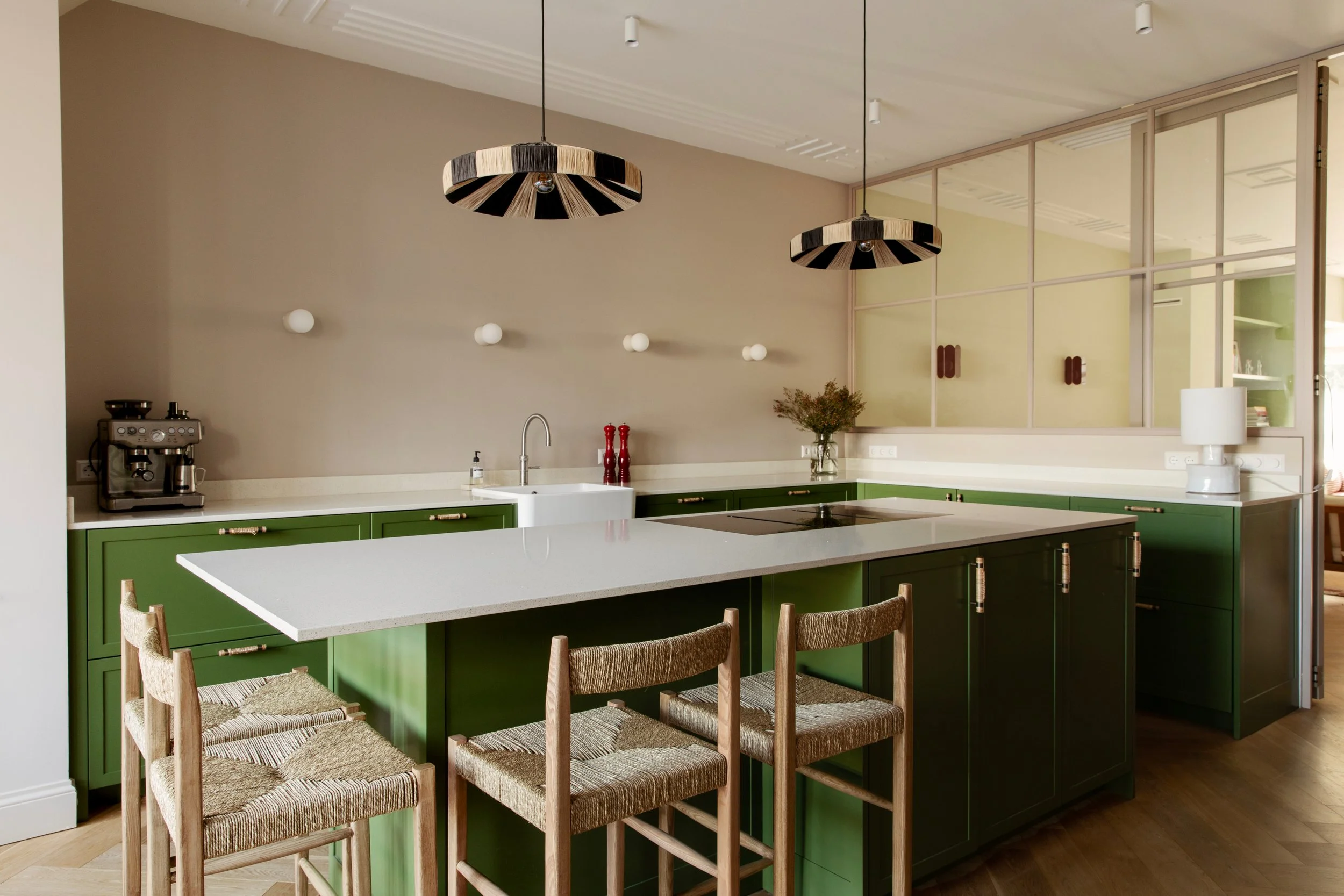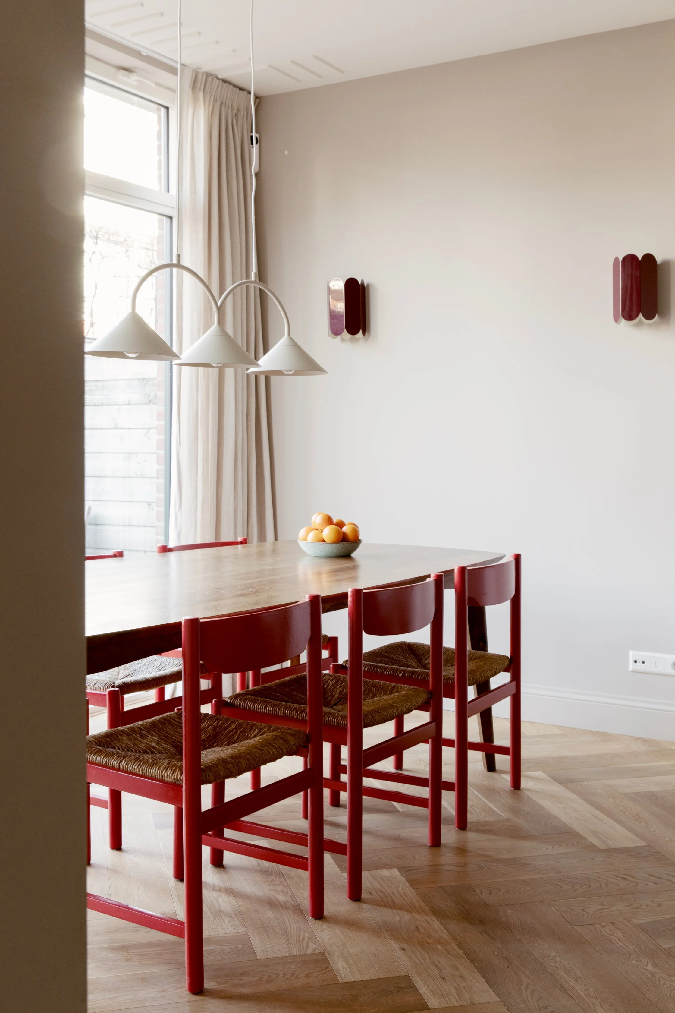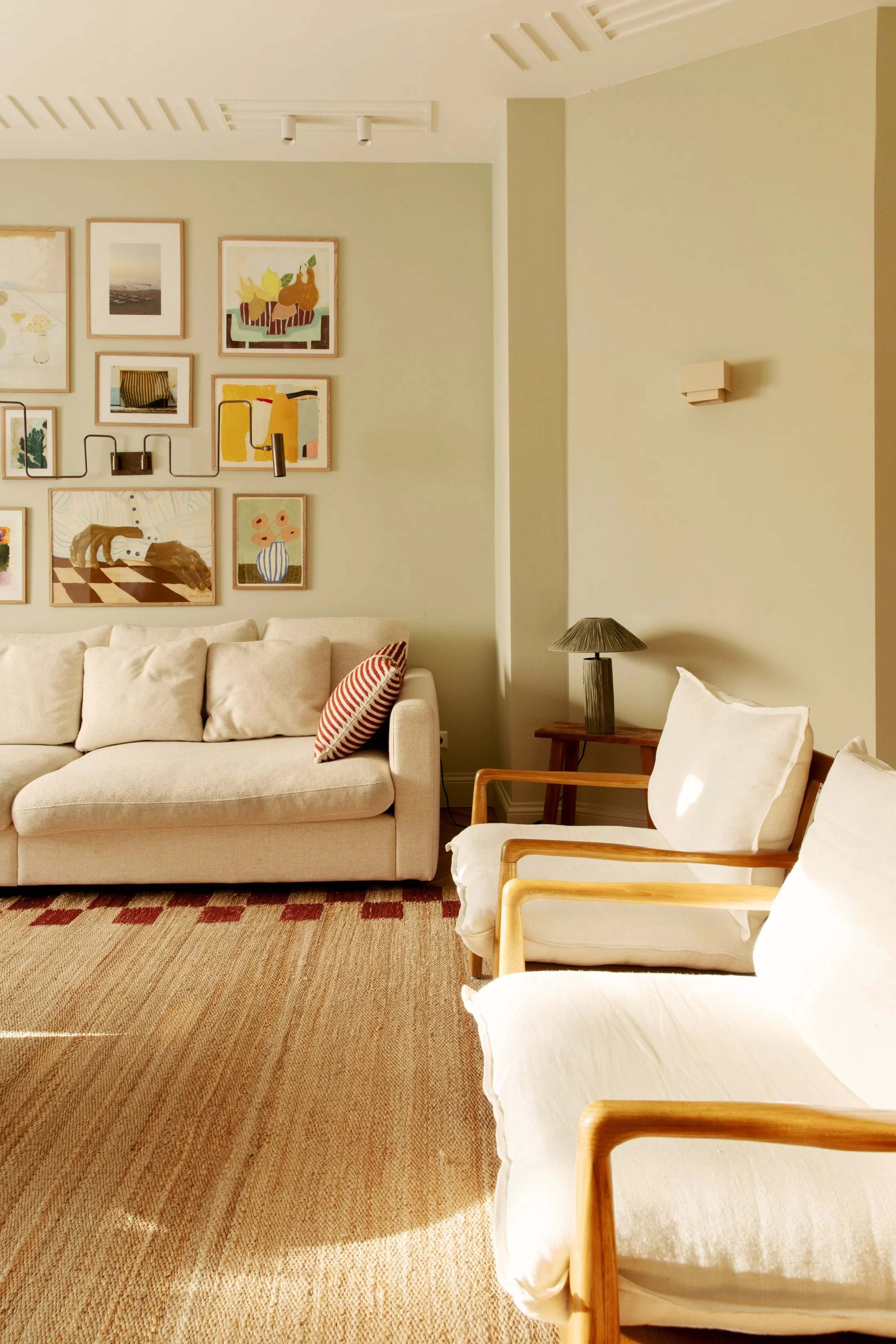A calm foundation of neutral wall tones allows texture, form, and silhouette to lead, while bolder expressions emerge through furniture, objects, and material contrasts. The balance between restraint and personality gives the interior a quiet confidence—considered, individual, and effortlessly livable.